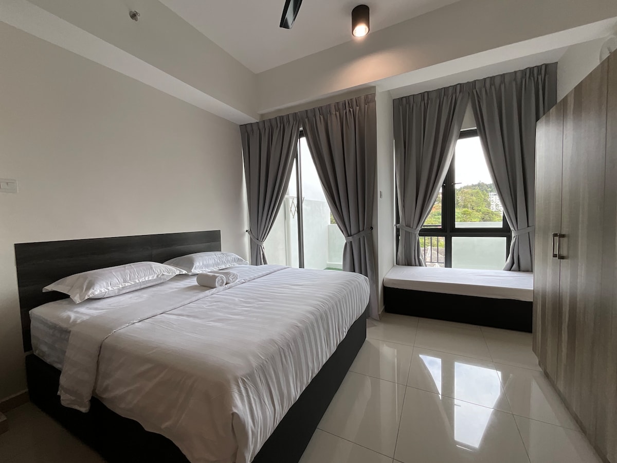 Bienvenido a nuestro exquisito apartamento de hotel de 3 habitaciones en Nova Retreat en Cameron Highlands. Deléitate con las serenas vistas de la cercana granja de abejas y los impresionantes amaneceres desde tu santuario elegantemente amueblado. Cuidadosamente diseñado para ser apto para niños y ofrecer un acceso sin problemas a las atracciones cercanas, este apartamento ofrece la combinación perfecta de comodidad y conveniencia. Tanto si buscas una escapada familiar tranquila como una exploración aventurera, nuestro retiro te permite vivir una experiencia inolvidable.
