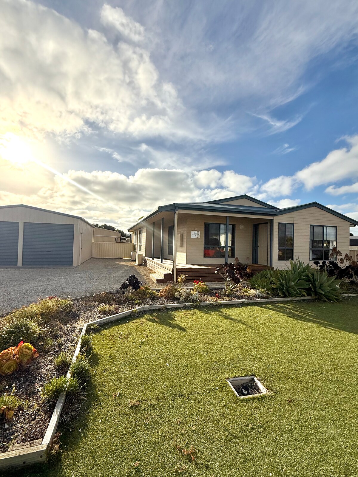 Escucha las olas en Aloha Sands: nuestra casa de playa familiar es una de las casas de vacaciones favoritas de Robe. Está a pocos pasos de Hoopers Beach, así como de la calle principal, donde encontrarás tiendas, cafeterías y mucho más. Prepara tu coche y dirígete a Long Beach para pasar un día surfeando o date un paseo por uno de los senderos cercanos. Nuestra casa es adecuada para familias y parejas que buscan una casa de vacaciones relajante, y tiene un patio trasero vallado con un césped exuberante y una enorme pérgola para entretenerse.