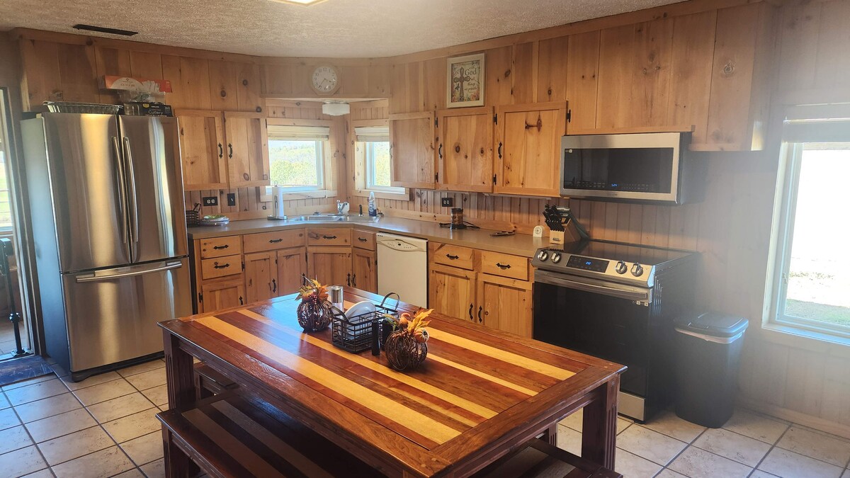 Despiértate en los Ozarks con senderos a solo unos pasos de tu puerta. Camina hasta Hemmed-in-Hollow Falls, disfruta de la observación de las estrellas alrededor de la fogata y relájate en una espaciosa cabaña de 3 dormitorios y 2 baños con capacidad para 8 personas Perfecto para escapadas de fin de semana, viajes en familia o aventuras con amigos: equipado con todo lo que necesitas, desde wifi hasta leña. • Caminata de 15 minutos a Antenna Pine Overlook desde la propiedad para ver el río Buffalo • 10 rutas de senderismo populares, 3 accesos al río Buffalo y avistamiento de alces, todo a menos de 13 millas de la cabaña