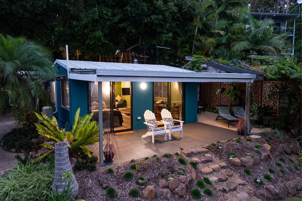 Experience the newly built, architecturally designed 'Wellness Cabin' overlooking the rainforest on Tamborine Mountain. Relax and "leave no trace" in this healthy, harmonious, natural + sustainable space for your next holiday. Unwind in the artisan clay rendered walls with your own private, luxurious bathhouse, off-grid, fireplace, firepit, organic gardens + chooks. Our 'Wellness Menu' provides complimentary, in + outhouse experiences. Suits couples, health/ wellness retreats + small families.
