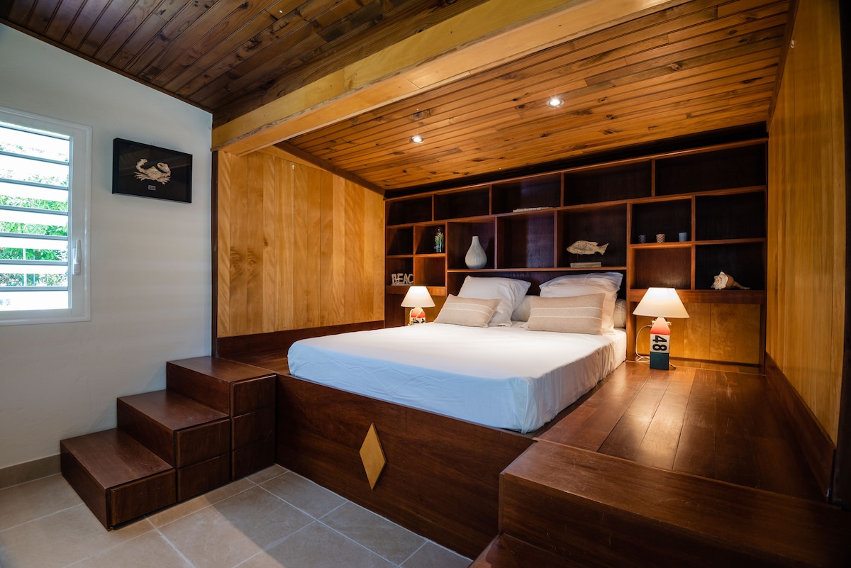 Encantador apartamento moderno independiente con aire acondicionado (322 pies cuadrados), planta baja de la villa del propietario, terraza de madera junto al agua (160 pies cuadrados). Este lugar único ofrece una magnífica vista sobre el fondeadero de Grande anse d'Arlet y un acceso directo y gratuito a nuestro muelle privado y al mar. A 3 minutos a pie de la tranquila playa de Grande anse a lo largo de nuestro carril privado.