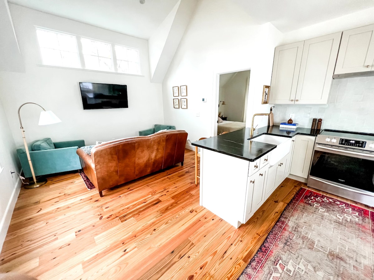 Relájate en esta casa de huéspedes independiente ubicada en un barrio bien establecido de Lowcountry. La «casa del árbol» tiene un diseño de planta abierta con techos abovedados de tablas dentadas, creando una sensación de luz y espacio, con muebles elegantes en todas partes. La cocina bien equipada y la parrilla en el porche fomentan la cocina casera íntima. Vivimos en este espacio antes de mudarnos a la casa principal, por lo que podemos dar fe de que es cómodo y está bien mantenido.