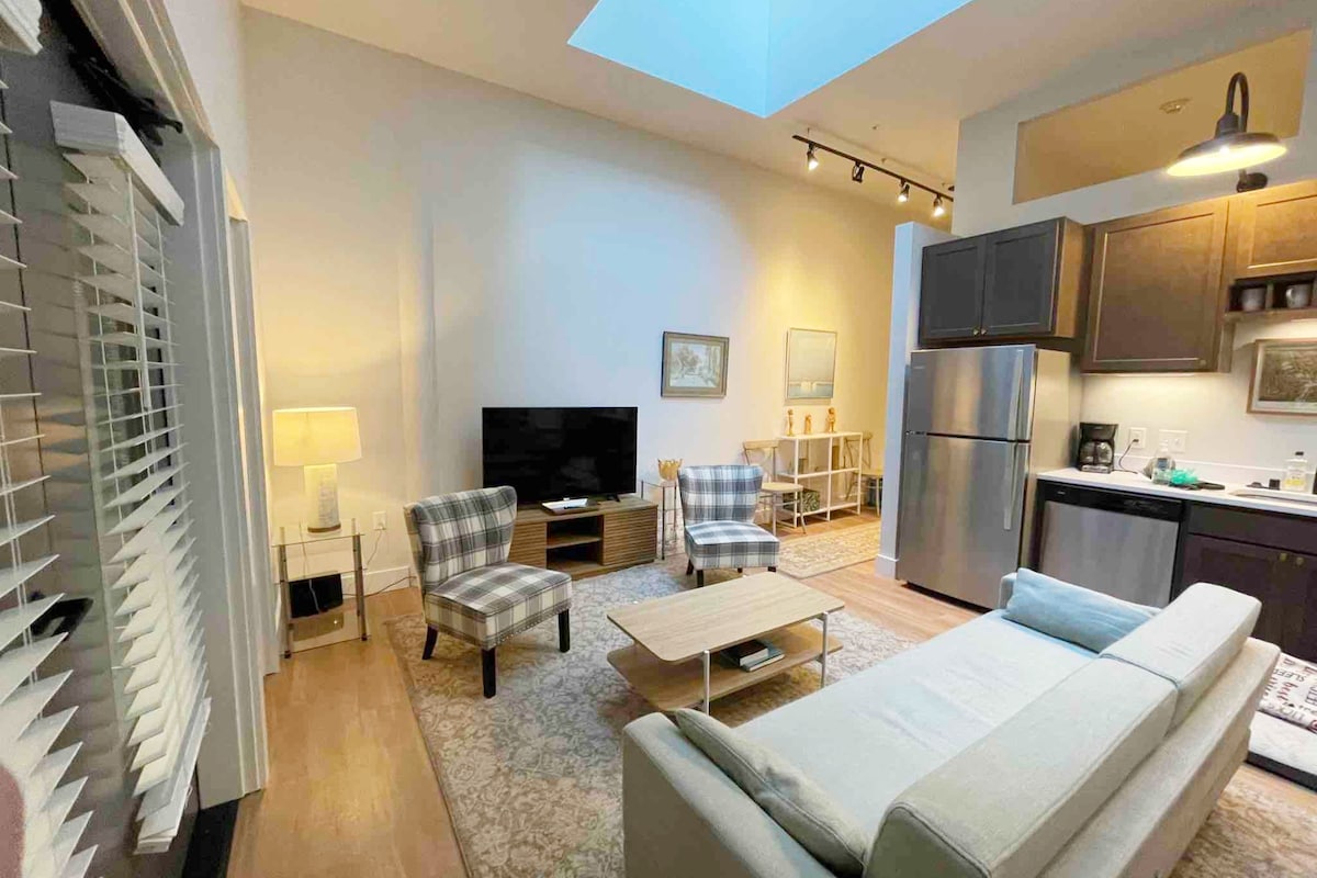 ¡Te damos la bienvenida a tu elegante retiro en Milwaukee! Este loft de 1 dormitorio combina el encanto histórico de Cream City con la comodidad moderna. Los techos de 4,5 metros de altura, los ladrillos a la vista y las ventanas de gran tamaño crean un espacio abierto y luminoso. Disfruta de una amplia cama tamaño king, cocina totalmente equipada y estacionamiento gratuito fuera de la calle, algo raro en este barrio. Camina hasta Third Ward, Walker's Point y los mejores restaurantes, cervecerías, tiendas y la vibrante orilla del río de Milwaukee. Perfecto tanto para trabajar como para jugar.