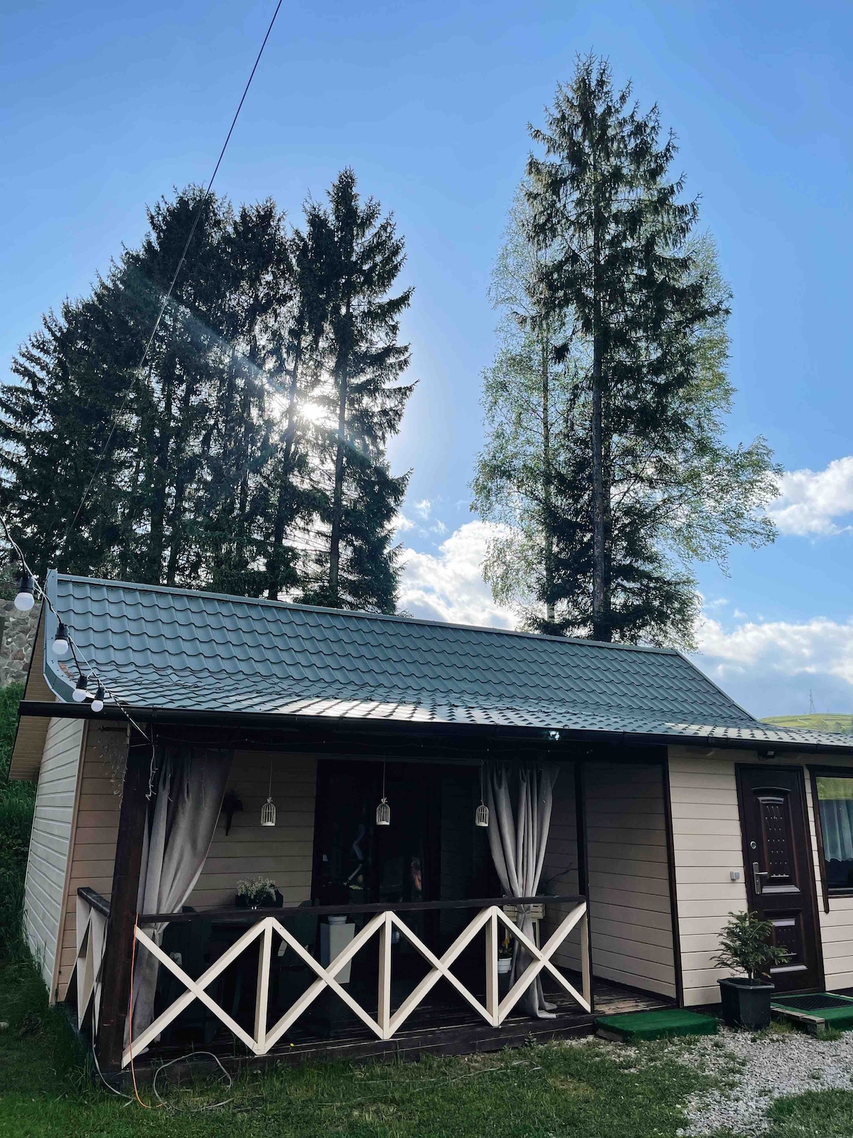 Незабутнє місце, розташована серед карпатських гір та біля лісу. Будинок має дві спальні кімнати з великими ліжками, повністю обладнану кухню з сучасною технікою, зручну вітальню з видом на гори та камін, де можна затишно провести вечір. Будинок має терасу з меблями для відпочинку та барбекю. У будинку є санвузол, душ, пральна машинка. Завдяки великим вікнам ви зможете насолоджуватись красивим карпатським пейзажем прямо зі свого помешкання.