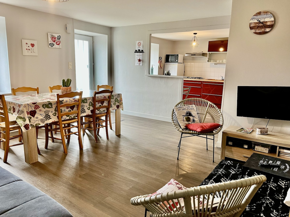 Apartamento T3 de 75 m2, salón, cocina, 2 dormitorios arriba, baño con bañera y 2 aseos independientes Entrada independiente Directamente abierto al patio y al aparcamiento con posibilidad de aparcar varios coches delante del alojamiento. Se proporcionan edredones y almohadas 60x60 Posibilidad de alquilar ropa de cama y toallas por 12 euros por persona para la estancia, solicítelo.