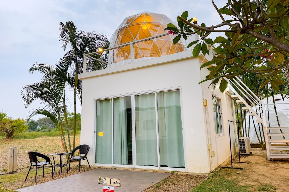 ¡Escápate a un refugio tranquilo donde la comodidad moderna se une a la naturaleza! Nuestros dos dormitorios privados (cama queen + individual cada uno) tienen capacidad para 4-6 personas, con baño privado, aire acondicionado y *diseño transparente* para noches estrelladas y mañanas soleadas. Disfruta de desayuno gratuito junto a la piscina, wifi/estacionamiento gratis y asistencia 24/7. Perfecto para familias, parejas o aventureros que buscan una escapada única: ¡reserva tu pedacito de paraíso!
