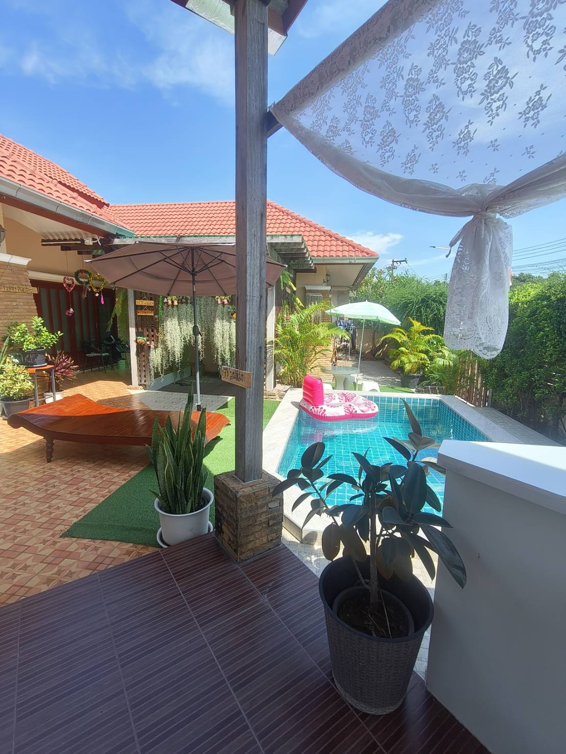 Trae a toda la familia a este gran lugar con mucho espacio para divertirse y relajarse. Situada en una carretera privada tranquila y segura cerca de todos los servicios. A solo 270 metros de la playa de Sai Keaw.
