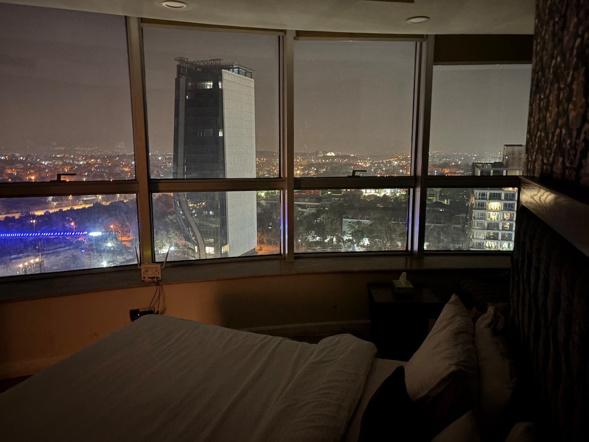 «¡Escápate a la serenidad! Nuestro impresionante apartamento de 1 dormitorio cuenta con impresionantes vistas al campo de golf desde su amplio balcón. Convenientemente ubicado a solo 10 minutos del Aeropuerto Internacional de Islamabad y a 20 minutos del centro de la ciudad, con fácil acceso a la plaza de peaje M1-M2 (a solo 2 minutos). Perfecto para familias o viajeros que buscan relajación, nuestro apartamento ofrece la mezcla perfecta de comodidad, conveniencia y tranquilidad. ¡Reserva tu estadía hoy mismo!”
