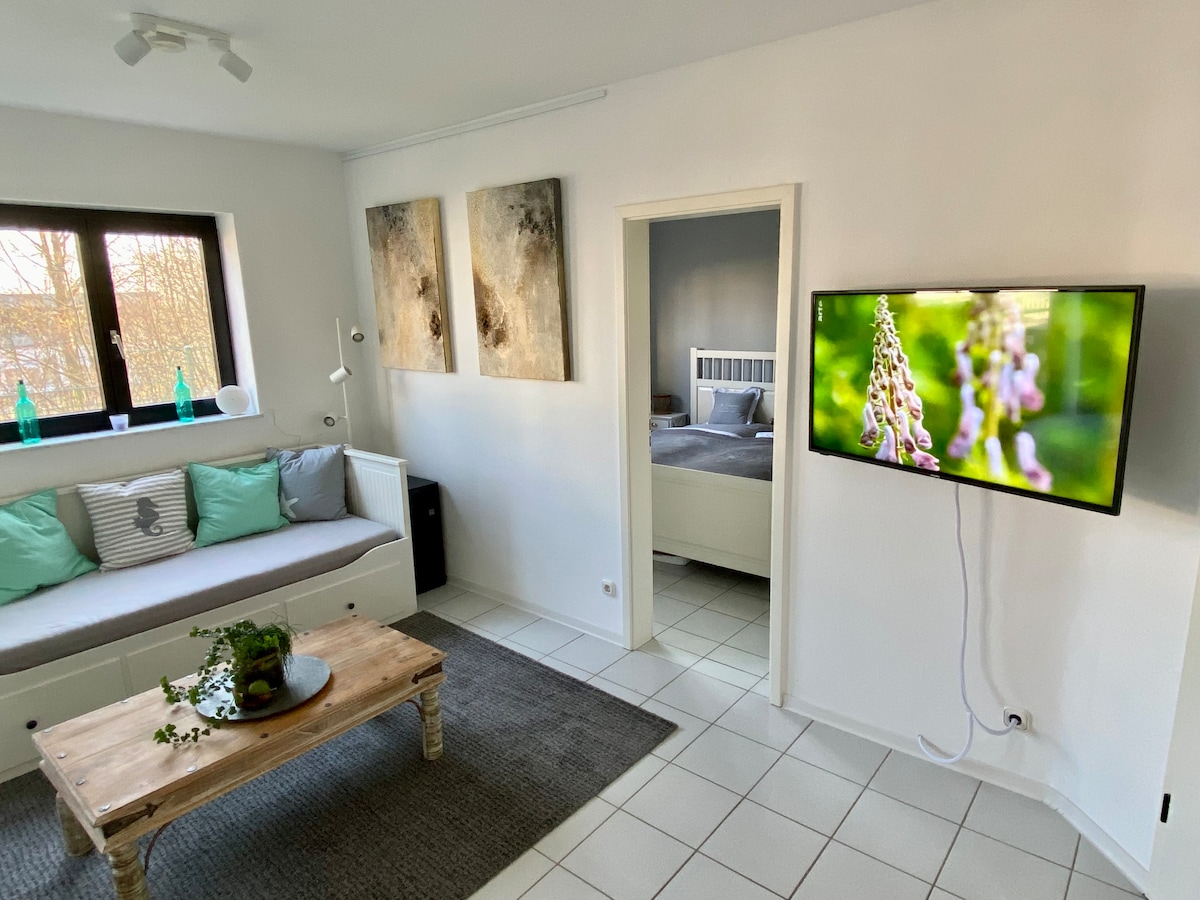 ¡Bienvenido a Solingen! Bonito apartamento en planta baja en una tranquila calle lateral. * Capacidad para 1-4 personas *Dormitorio: cama doble 180 x 200 *Zona de estar: sofá cama de 160 x 200 *Aparcamiento gratuito en la propiedad *Cocina totalmente equipada * Comercios en las inmediaciones * Muy buenas conexiones de transporte (autobús a 200 m, estación de Solingen Mitte a 400 m) *Acceso a una pequeña terraza con muebles de jardín *Ropa de cama, toallas de mano y de ducha incluidas *Entrada a las 15:00, salida a las 10:00