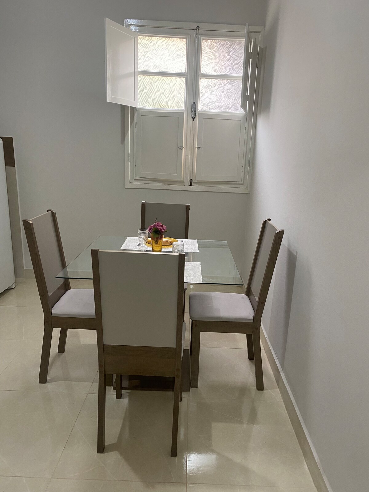 Apartamento grande y nuevo en el barrio de Dornelas en alquiler por mes, con muebles básicos. Con 2 habitaciones, sala de estar, cocina grande, área de servicio. Edificio con intercomunicador y sin condominio. Se incluye luz, gas y wifi compartido. NO TENEMOS garaje, solo estacionamiento gratuito en la calle del edificio.