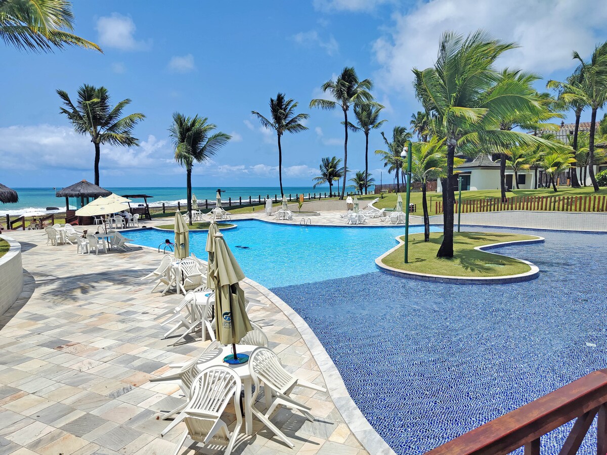 ¡Hola! Nuestro apartamento está ubicado en el Beach Class Muro Alto Resort, que está en primera línea de mar y cuenta con una de las piscinas más grandes de América con 3.200 m², 2 restaurantes, spa, tienda de comestibles, lavandería, etc. El Flat tiene 02 habitaciones y capacidad para 06 personas, 02 camas dobles más 01 sofá cama (doble), todas las habitaciones tienen aire acondicionado y televisores 4K con streaming gratuito, balcón, cocina equipada y mesa de comedor. Praia de Muro Alto es una de las más bellas de Brasil.