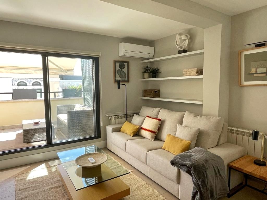 Ubicación inmejorable Descubre Madrid desde este elegante apartamento con terraza privada, renovado en 2025 y ubicado en el corazón de la ciudad. A pocos pasos de las principales atracciones y rodeado de auténticos bares de tapas, panaderías y tiendas locales como de transporte público. Ideal tanto para quienes visitan por primera vez como para viajeros frecuentes.
