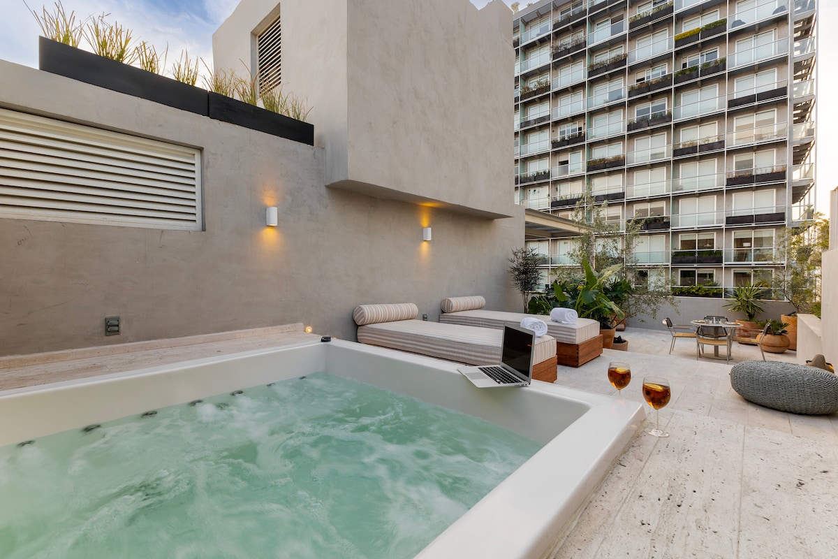 Loft bohemio-mexicano en Condesa con un exuberante jardín en la azotea