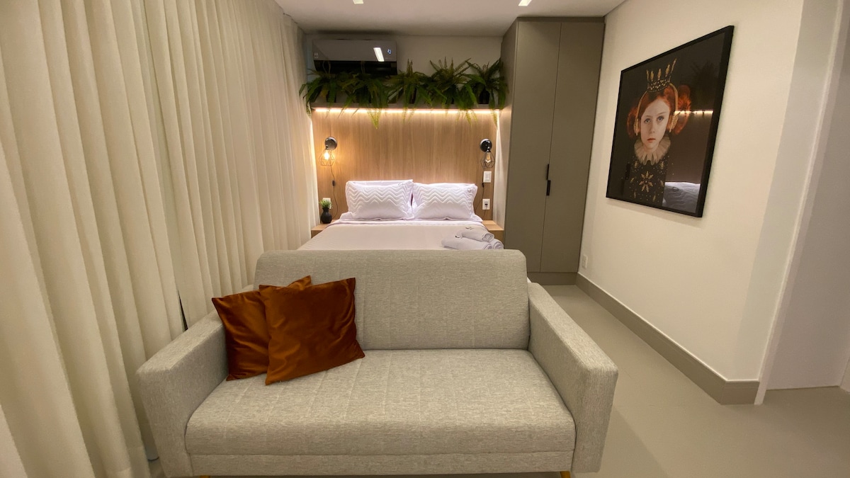 Curta uma experiência elegante neste lugar bem-localizado. Studio charmoso, bem decorado e aconchegante com vaga de garagem num prédio com piscina na cobertura. Salão de festas, lavanderia, brinquedoteca, academia e loja do Pão de Açúcar Minuto (mini-mercado) no térreo. Com opção do fechamento/abertura dos vidros da varanda da um ar de casa com a segurança de um condomínio. Muitos armários e utensílios domésticos dão ao hóspede a sensação de estar em casa. Wi-Fi VIVO FIBRA 600 Mbps.