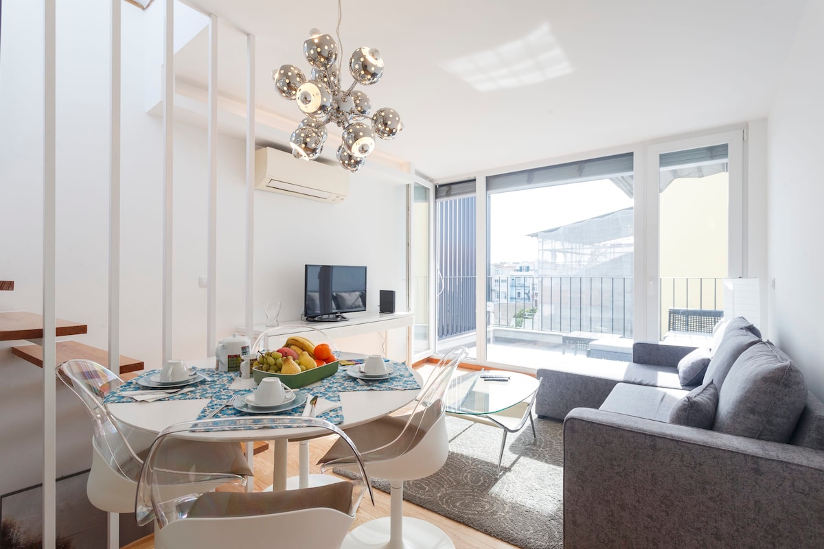 Disfruta del ático más bonito y genial de la ciudad, con una gran terraza y perfectamente ubicado en el centro de Lisboa, junto al río. Un apartamento único de 3 dormitorios lleno de luz, cuidadosamente renovado, con un diseño moderno que conserva hermosos detalles históricos (con aire acondicionado y ascensor). En los barrios más carismáticos de Lisboa, Bica y el moderno Cais do Sodré, donde encontrarás todo tipo de restaurantes, bares, tiendas... ¡Lugar perfecto para tus vacaciones que te permite explorar Lisboa a pie!
