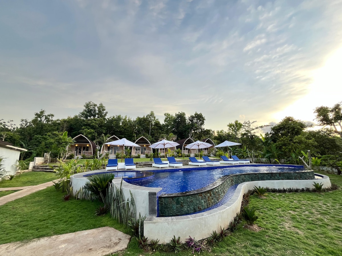 Ubicada en el corazón de la isla Lembongan, esta espaciosa villa está inspirada en una casa de madera tradicional indonesia de 50 años. La villa cuenta con una sala de estar al aire libre, una cama grande, aire acondicionado, ventilador de techo, TV de pantalla plana con internet, caja fuerte, baño al aire libre con bañera, cocina bien equipada y nevera. Los huéspedes pueden relajarse en la cabaña, columpiarse o nadar en la piscina privada de la villa.