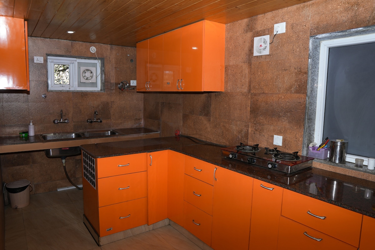 Olvídate de tus preocupaciones en este espacio espacioso y sereno. Nuestra casa de huéspedes tiene vistas a un gran y exuberante jardín verde. La terraza ofrece una vista de 360° de las montañas. Puedes disfrutar de la noche en tu propio patio y disfrutar de la barbacoa. La casa de huéspedes es espaciosa con 1 dormitorio de diseño, baño adjunto, una cocina totalmente equipada y tu propio patio personal, lo que la convierte en un hogar perfecto lejos de casa. - Mussoorie: 18 km - Cueva del ladrón, Sahastradhara - 20 minutos - Wifi gratuito, Netflix - Famosos restaurantes cercanos.
