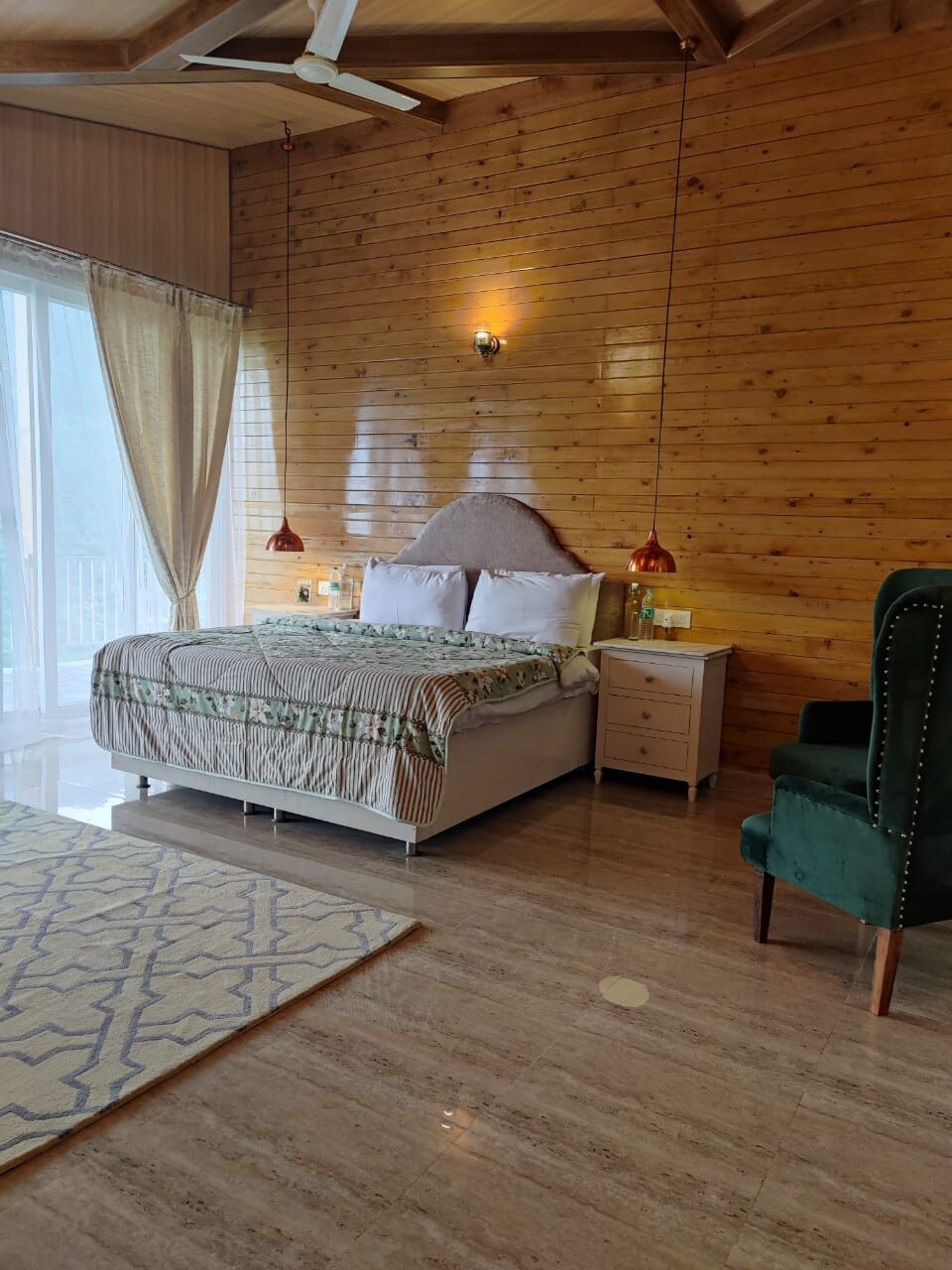 Tres habitaciones bien amuebladas con aseos adjuntos. Una habitación sin inodoro adjunto. Sala de lectura/sala/comedor /cocina. Todas las habitaciones equipadas con televisores Smart Android con conexión a internet de 30 MBPS. Chimenea en la sala de estar común. Cocina con cilindro LPG y quemador / nevera/microondas/RO/cafetera. Cocinero disponible bajo petición(500 rupias por día adicional). Habitación separada disponible para conductores . Ciclismo de montaña/ciclismo/parapente/senderismo/hoguera/observación de estrellas