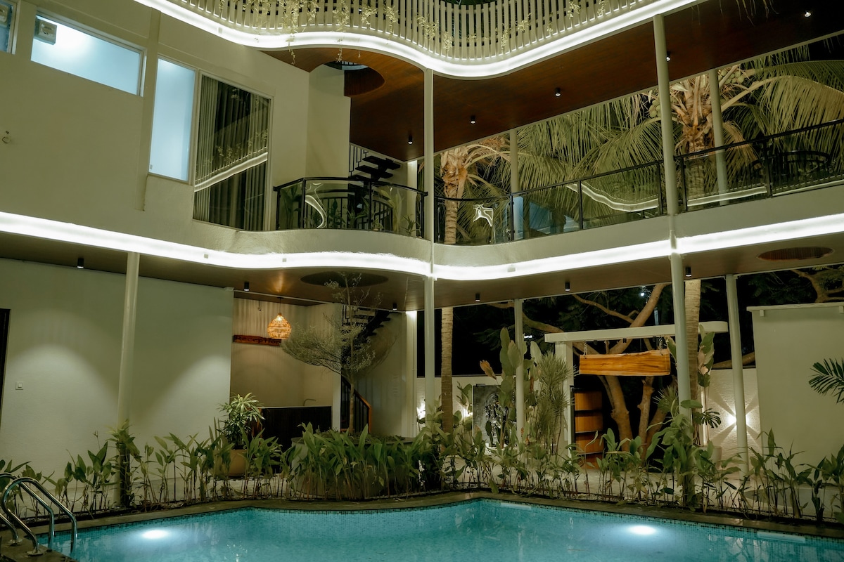 Vafa Acres is a refined hideaway in Mysore, thoughtfully designed for those who value privacy, comfort, and meaningful time together. Tucked away amid lush greenery, the villa offers a calm, secluded setting where nature becomes part of the experience. Inside, earthy interiors layered with warm textures and understated detailing create a space that feels both grounded and indulgent.