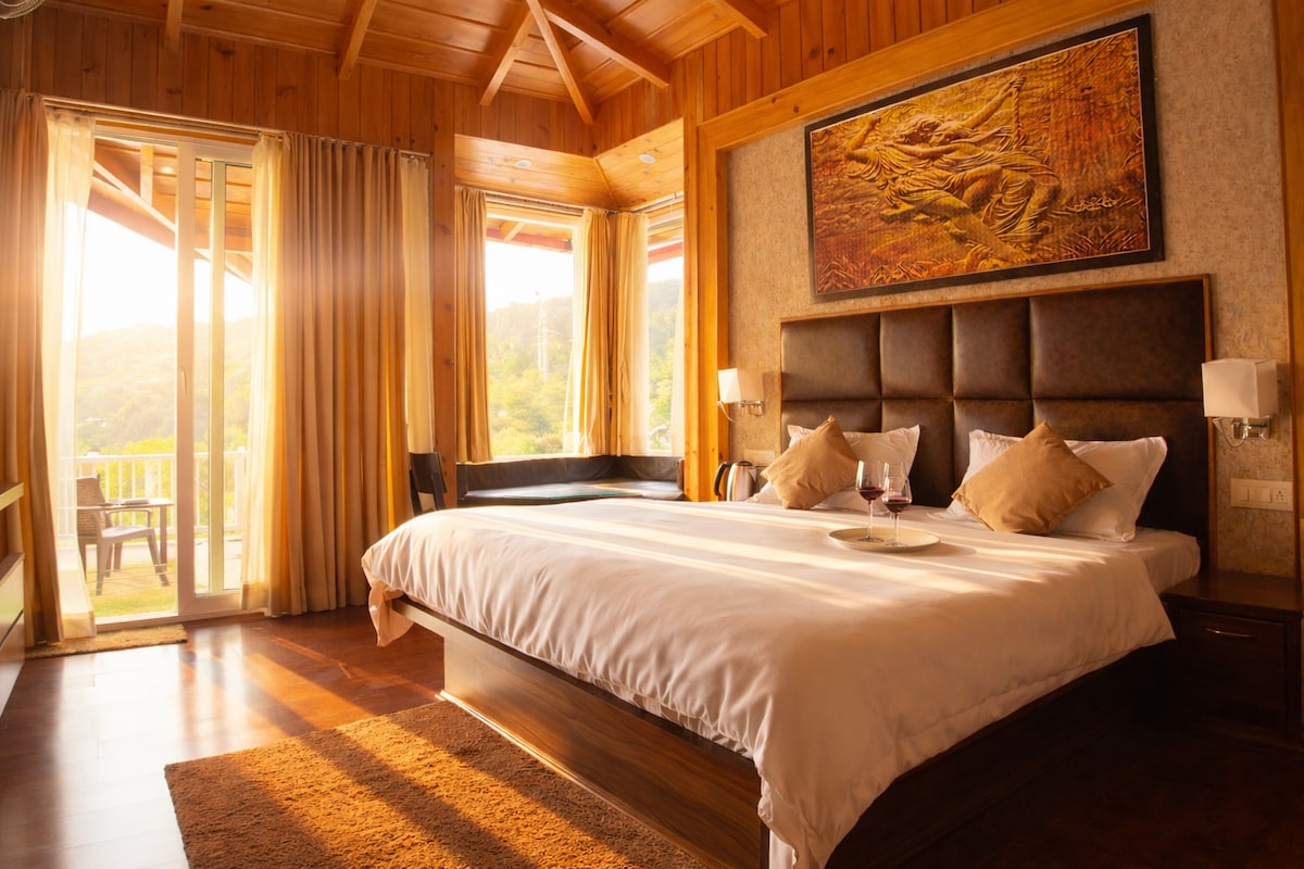 Chestnut is 1 of 4 private suites at Northdeck Padampuri, a family-run boutique resort in Sarna Village. If you are looking to slow down, this is your sanctuary. Perfect for couples, remote workers, or anyone needing to escape city life, this suite offers a rare blend of modern comfort and mountain stillness. 1,850m above city chaos, wake to unhurried mornings as the sun greets you on your bed, birds sing, and the sound of the breeze through pine trees nudges you to be truly present.