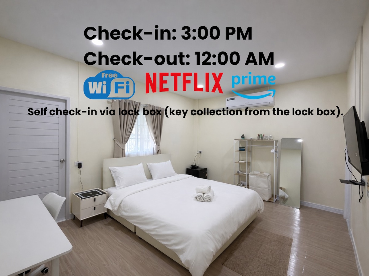 Bienvenido a su escapada perfecta en el centro de Nakhon Ratchasima • Habitaciones espaciosas con camas acogedoras, ideales para familias o grupos pequeños •Cocina totalmente equipada. •Ubicado en un barrio tranquilo y seguro con acceso con tarjeta y seguridad de CCTV 24/7 • Ubicación privilegiada: a pocos minutos de mercados frescos y calles comerciales nocturnas • Cerca de los principales centros comerciales como Central, Terminal 21 y The Mall. • Cerca de una gasolinera PTT con punto de carga para vehículos eléctricos Ven y disfruta de una estancia tranquila en la mejor ubicación de la ciudad