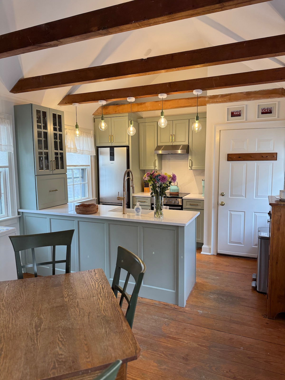 Una casa de campo única de dos dormitorios al revés con una terraza y una vista del puerto. Un espacio curado con vigas antiguas, puertas artesanales, suelos y armarios, antigüedades y bellas artes. Todo le da un toque vintage a una casa actual con todas las comodidades. Hay un pequeño patio lateral privado y un jardín con parrilla al aire libre y asientos. Esta no es una casa de fiestas, es una casa sensible, vivo justo en la propiedad, junto a la casa de campo, tienes total privacidad, pero sin travesuras.