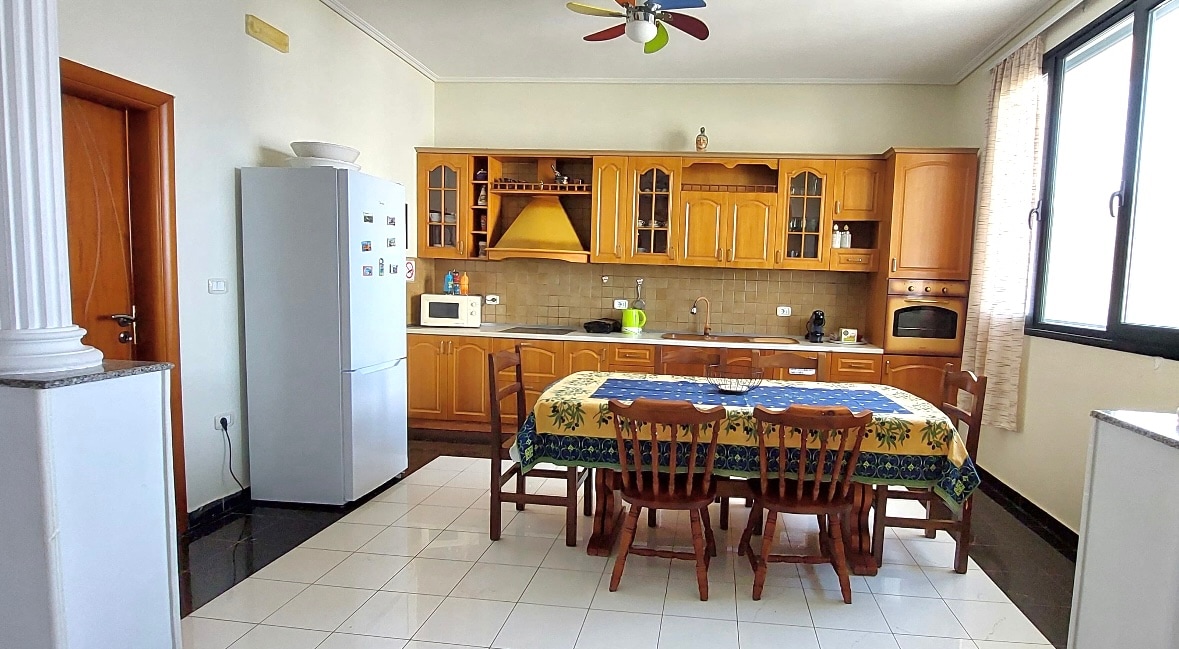 Apartamento soleado y panorámico que ofrece las vistas más espectaculares de la bahía de Vlora. Puedes disfrutar de los impresionantes azules y verdes del mar y sentir la comodidad y la paz en la zona más codiciada. La residencia donde se encuentra la casa es de nueva construcción, el área total del apartamento es de 120 m2 y tiene dos balcones con vistas al mar. Un balcón pertenece a la sala de estar y a la cocina, mientras que el otro a la habitación matrimonial. El apartamento tiene otra habitación amueblada con 2 camas individuales.