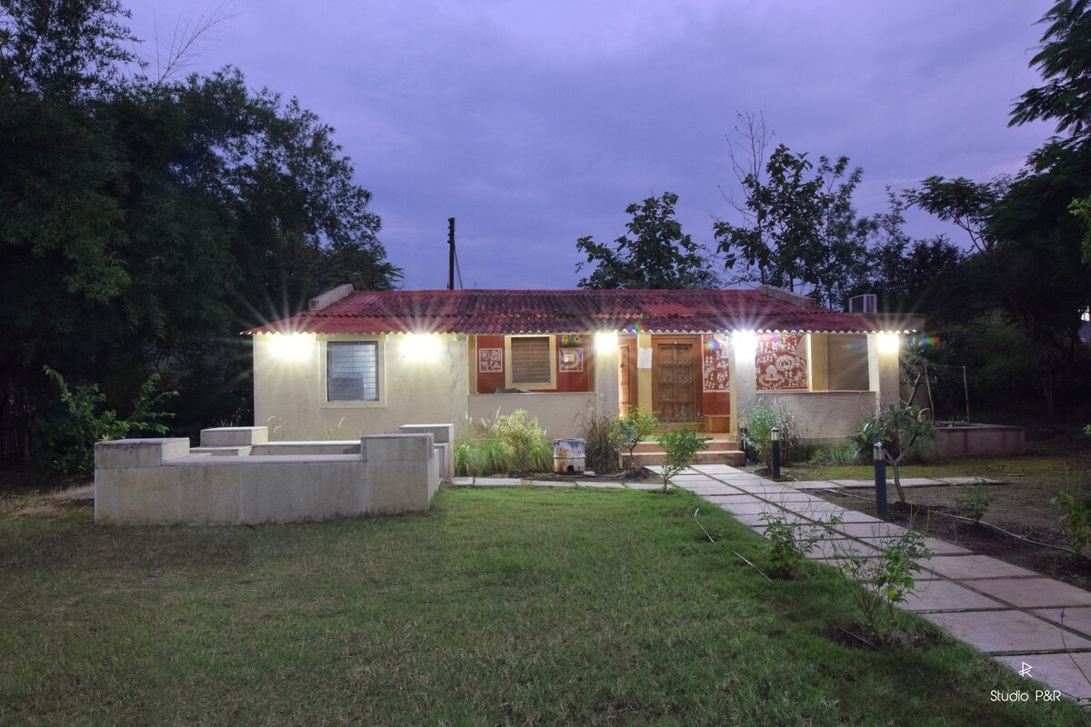 🔥 Por favor, ten en cuenta que los servicios opcionales - Aire acondicionado disponible en el dormitorio (₹ 500/noche/extra) y no en la sala de estar. - Opción de barbacoa disponible (con cargo adicional) Tipo A - 1BHK Cottage en Bimal Farm Relájate en una acogedora casa de campo de 1-BHK en una granja de 2 acres. 🏡 Disfruta de una bañera, vistas panorámicas y un entorno tranquilo. 🌿 Las atracciones cercanas (10-30 min) incluyen la presa Vaitarna, el fuerte Harihar y Trimbakeshwar Jyotirlinga. 🏞️ Cocina tus propias comidas, pide a nuestro cuidador o recibe comida a domicilio en un restaurante cercano. 🍽️