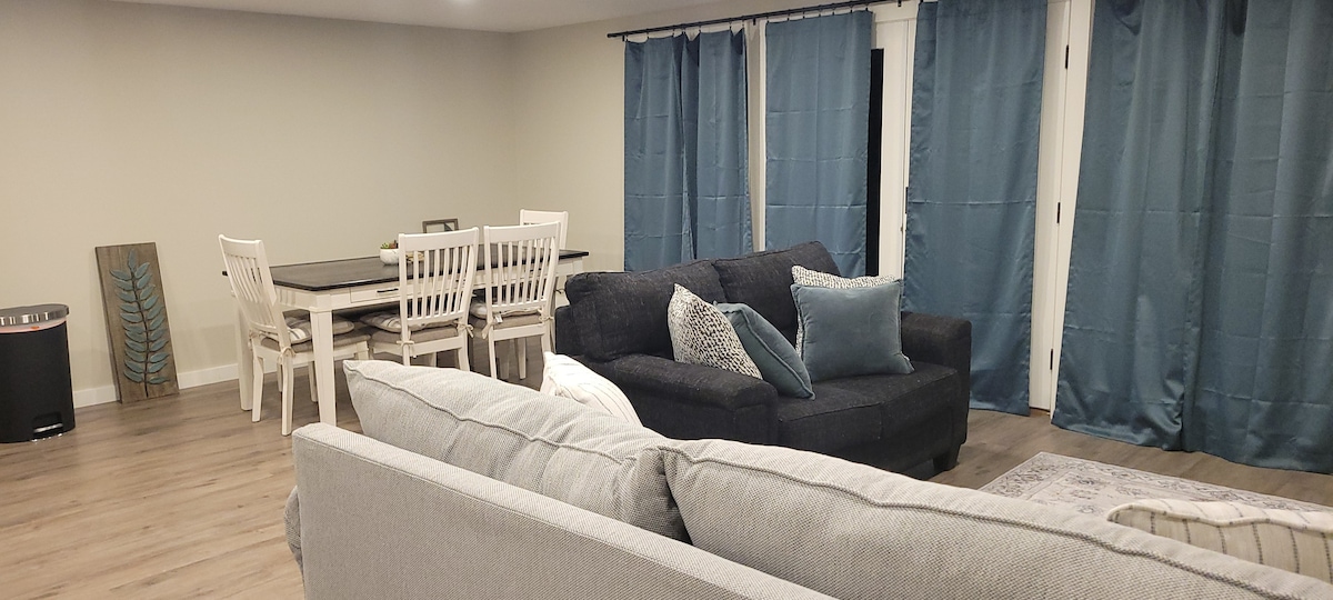 Precioso apartamento entero de 2 dormitorios. Recién renovado en una ubicación conveniente. Justo en el centro de toda la actividad local en la ruta 101A. Un dormitorio con cama tamaño king y otro dormitorio con una cama tamaño queen. Una gran sala de estar con un sofá cama adicional para alojar hasta dos personas adicionales. Y, por último, una cocina con electrodomésticos y un comedor para cuatro personas. El enchufe NEMA 14/50 ahora está disponible para nuestros huéspedes con vehículos eléctricos. Tarifa por huésped adicional: después de 2 huéspedes, es de $ 10 por noche.