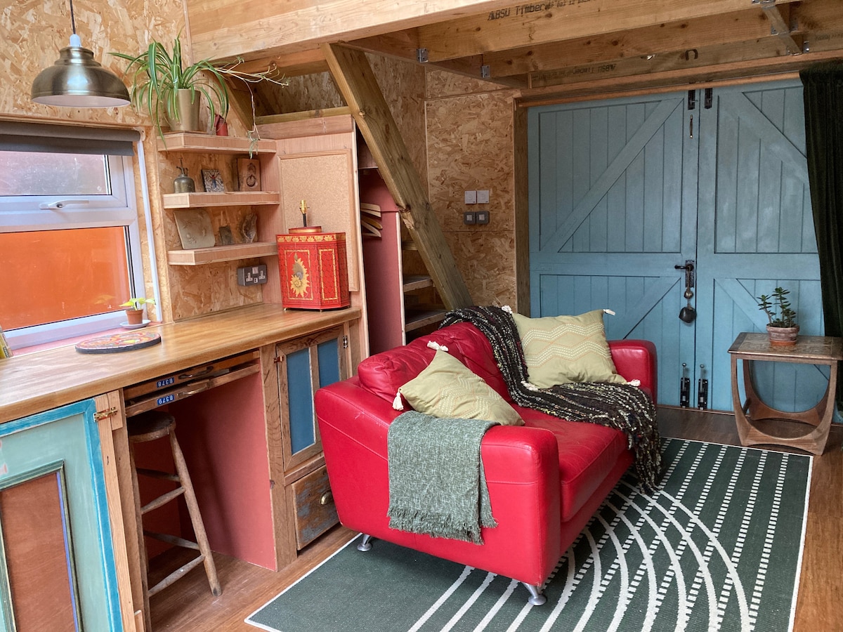 A completely self-contained annex-come-studio in our garden. It has everything you need for a short stay in Cardiff and is very close to lovely parks, cafes, restaurants and shops and is 25 mins walk or ten mins bus ride to town - the bus stop is right behind the annex. It is suitable for a couple, two friends (there's a pull-out single bed in the living area) or a couple with a child. We converted our garage during lockdown and created this unique and cosy space.
