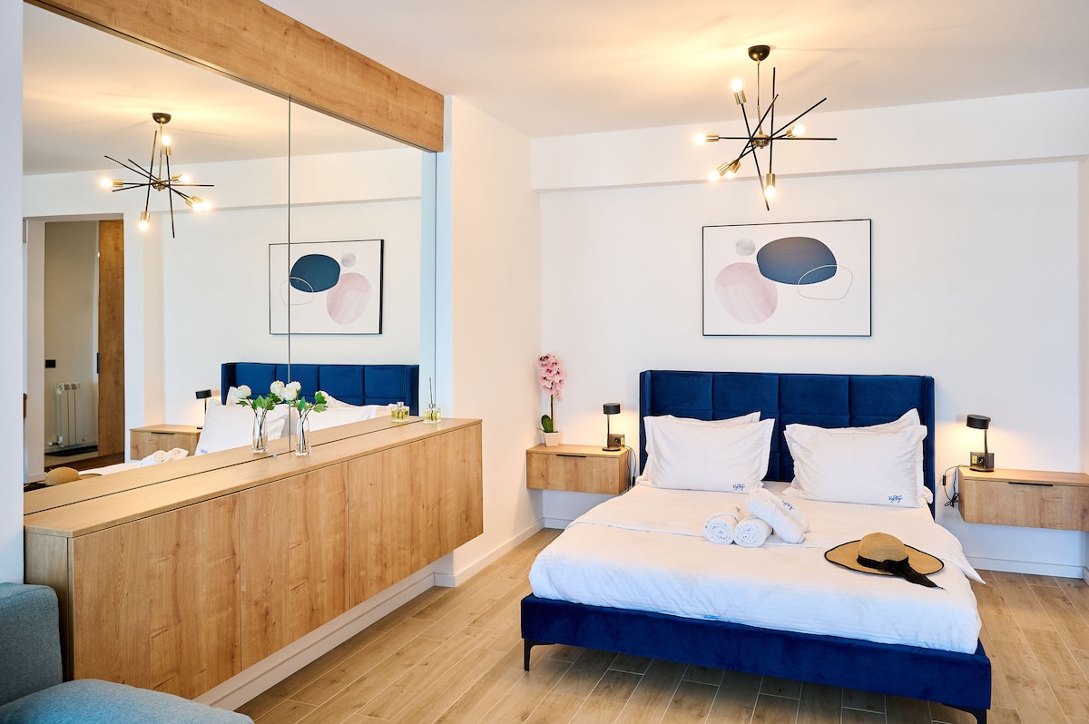El apartamento Rayan está situado en Odyssey by Alezzi Resort (el complejo más nuevo, abierto en 2025). Este acogedor apartamento de un dormitorio ofrece alojamiento para 4 adultos o 2 adultos y 2 niños. La distancia a la playa es de alrededor de 300 metros y el área de playa es una de las más buscadas en Mamaia Nord Resort. A poca distancia de la playa, restaurantes. * Acceso gratuito al SPAy al parque infantil * Acceso gratuito a piscinas durante todo el año y área de fitness. * Wifi y aparcamiento gratuitos * ¡Café/agua! * Asistencia las 24 horas, los 7 días de