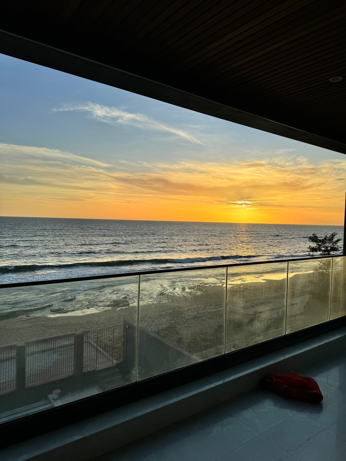 Una casa de campo familiar en la tranquila Popenguine. Nuestra casa está elevada justo encima de la playa y ofrece hermosas vistas desde todas partes de la casa. Rodeada de buganvillas y exuberantes árboles, la casa se siente privada y aislada. La gran terraza cubierta de la planta baja es donde pasarás la mayor parte de tu tiempo, pero cuando necesites entrar, estarás cómodo y fresco.