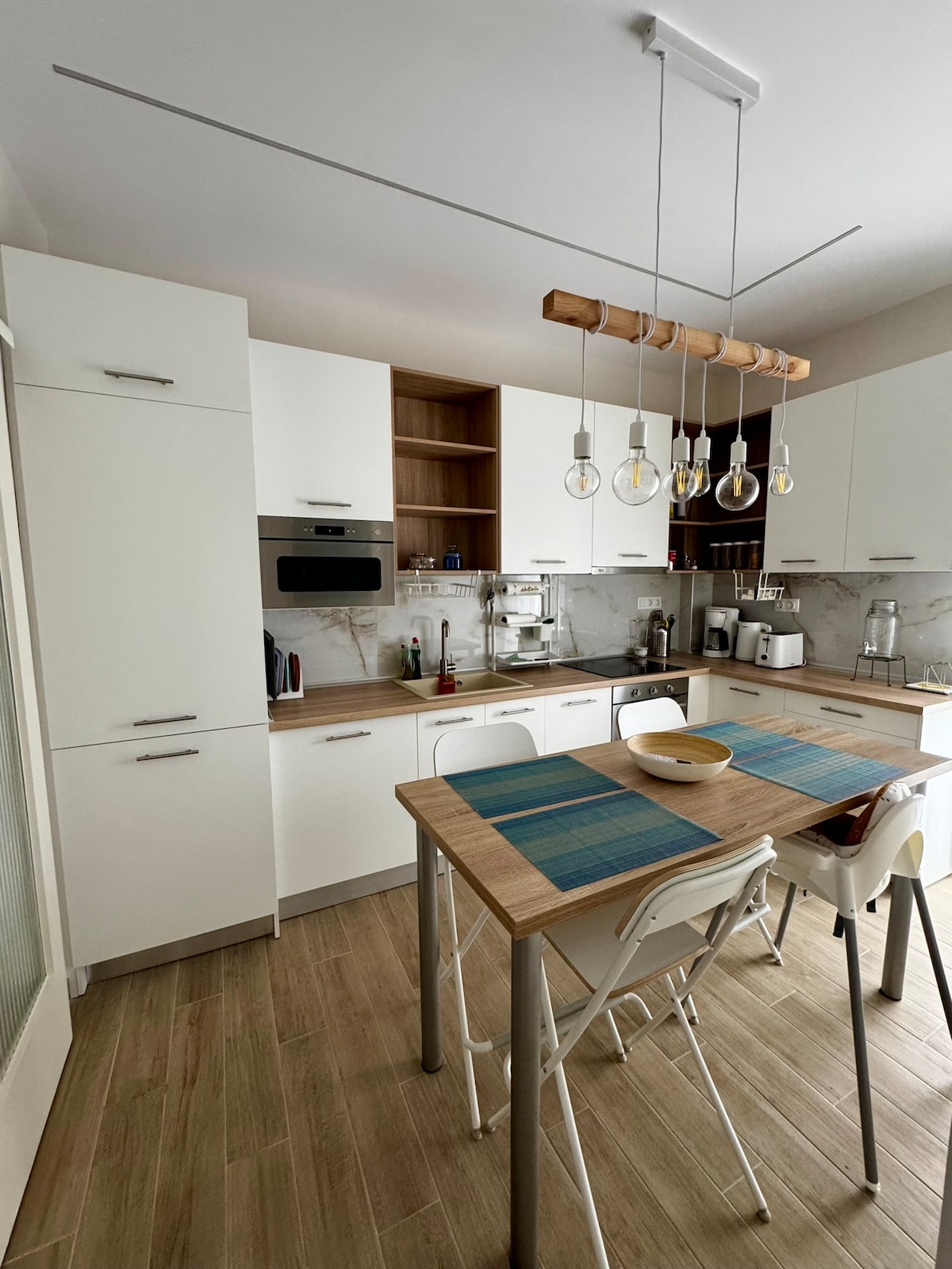 Our spacious, fully renovated apartment is tastefully furnished with modern amenities, including two air conditioning units, fiber-optic internet, a washer, a dishwasher, and a fully equipped kitchen for an easy stay. We’ve set it up to feel like a home away from home. The bedroom is separate for added privacy and comfort. You’re just steps from the beach, with easy access to tavernas, restaurants, cafés, shops, a bus stop, a tennis court, and a local museum. Beach - 1–2 minute walk.