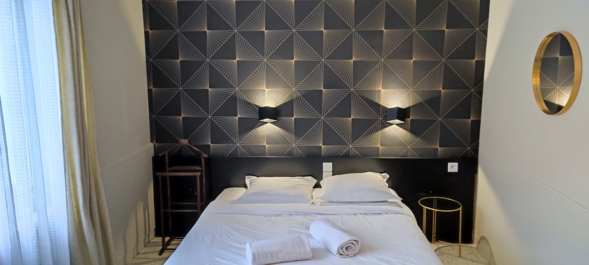 Disfrute de un alojamiento de 2 habitaciones elegante y céntrico, reformado con aislamiento, situado a 2 minutos a pie de la estación de tren, a 8 minutos del centro histórico, aparcamiento gratuito. Wifi fibra espacio oficina Tv. Cocina equipada con todo lo necesario, lavadora, lavavajillas. No fumadores. Situado en el 2º piso en una zona tranquila de un hermoso edificio con código digital. Acceso mediante «self check-in». El equipaje se puede guardar en el sótano en caso de llegar antes de la hora prevista.