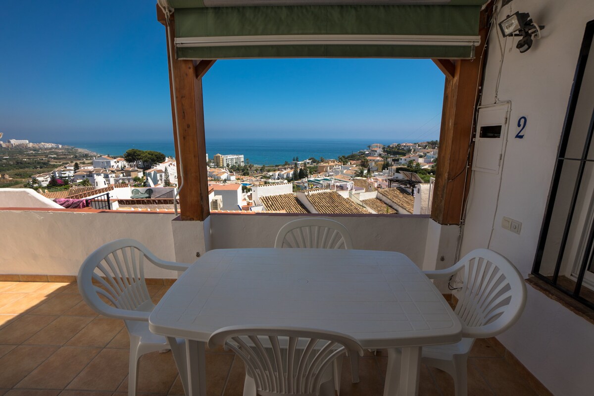 ¡Hermosa casa de campo andaluza con vistas al mar desde el amplio balcón en un entorno pintoresco en Nerja! El soleado jardín privado con terraza en la planta baja es una encantadora zona al aire libre para disfrutar. A solo 6 minutos a pie de la playa y los restaurantes de Burriana. El alojamiento está completamente renovado en junio. Ten en cuenta que tienes que subir escaleras para llegar a la casa y que la casa tiene una escalera de caracol para acceder al dormitorio de abajo desde el salón. Aparcamiento gratuito disponible en la calle.