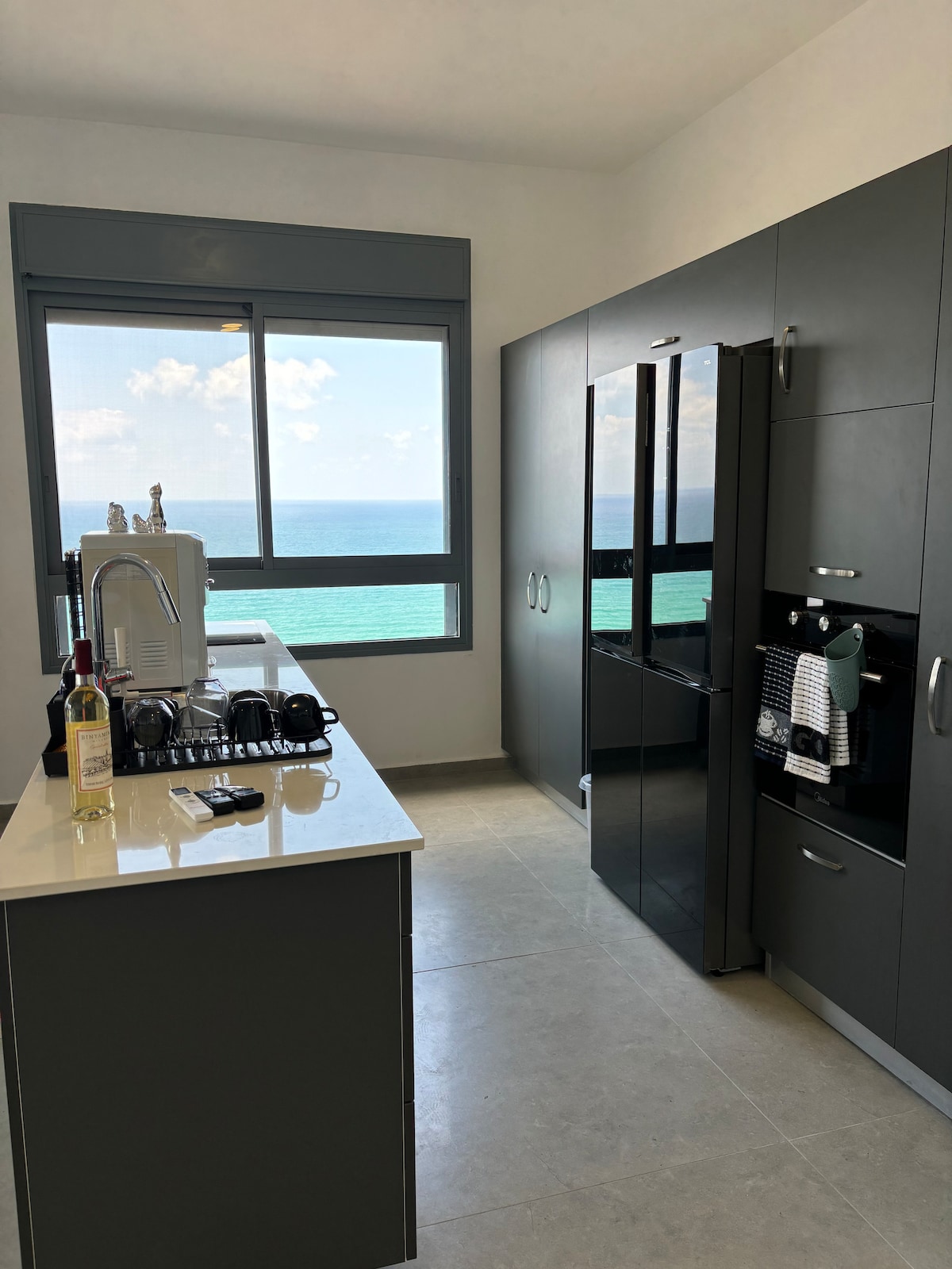 El departamento está en el octavo piso de las Torres Marinas en Herzelia Pitu'ach, a 5-10 minutos a pie de los hoteles Acadia y Daniel. Tiene dos habitaciones, una sala de estar y un dormitorio + cocina + 1 baño completo y un segundo inodoro y lavabo. Hay una vista panorámica del mar Mediterráneo y la orilla del mar. El edificio da al magnífico puerto deportivo Herzelia. El edificio de apartamentos se encuentra sobre el centro comercial Arena, con cines, cafés, restaurantes y tiendas de moda, además de muchas más tiendas, como una farmacia. Hay un gimnasio totalmente equipado con sauna húmeda y seca en el edificio y piscina que está abierta de abril a noviembre. La cocina está diseñada para los observadores de Kashruth.