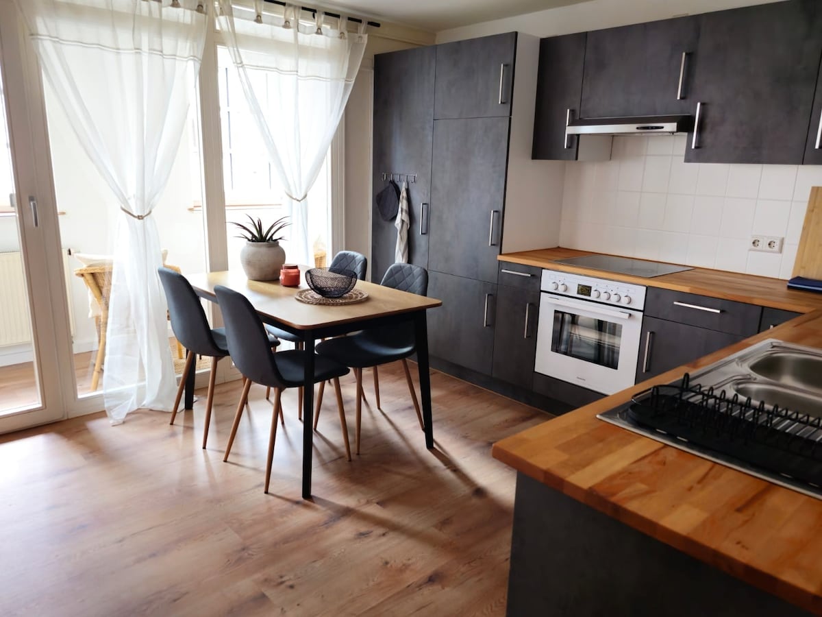 Bienvenido a nuestro encantador apartamento de 3,5 habitaciones recientemente renovado. Amplio salón de 90 m², situado en la planta baja Estancia mínima: 2 noches Acceso directo a la ruta circular prémium Siebentaler, una de las rutas de senderismo prémium mejor valoradas de la región. Conexión con el popular carril bici Neckartal justo fuera de la puerta principal La estación de tren está a solo 10 minutos y la parada de autobús a solo 3 minutos a pie, ideal para un cómodo viaje en tren/autobús.