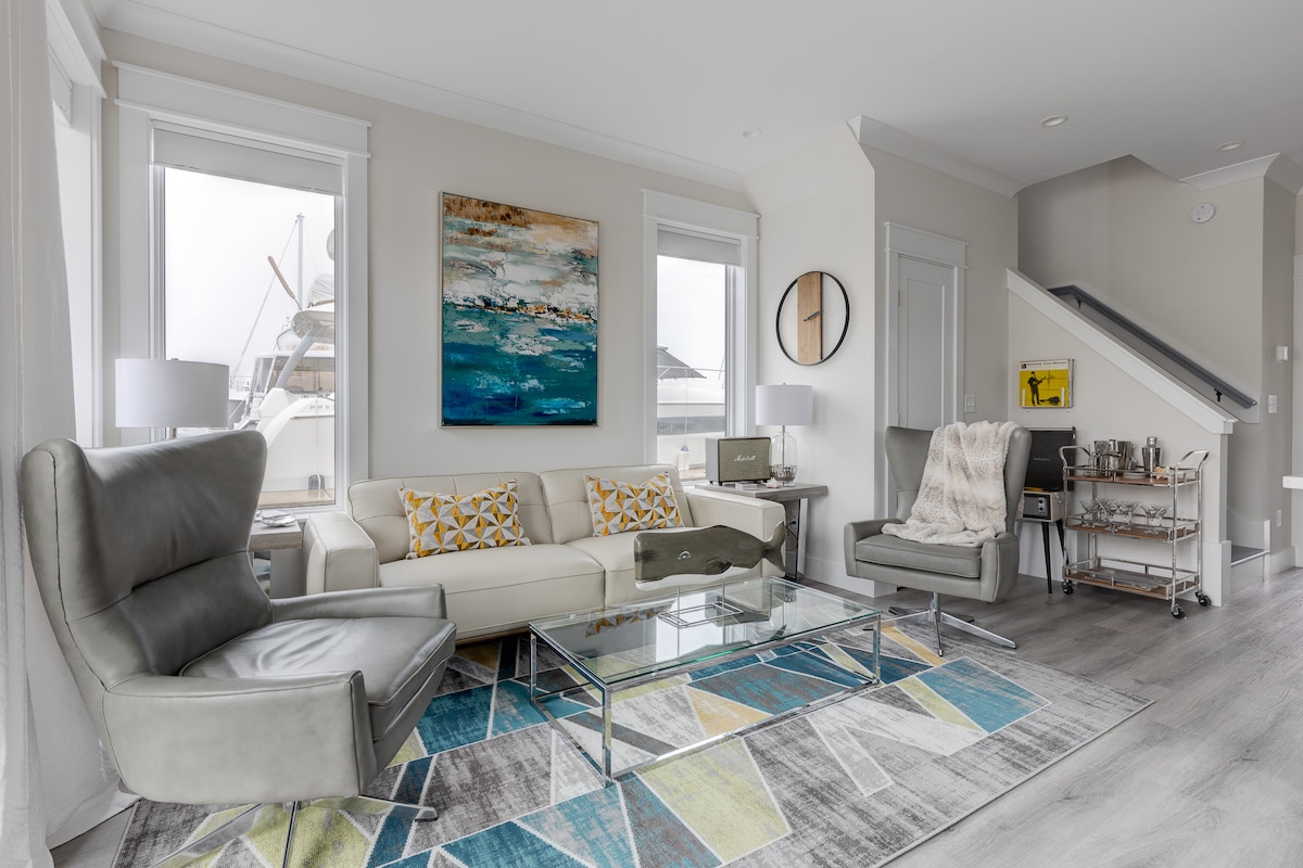 Te damos la bienvenida a “¡La Regencia!“ Vivirás la" dulce vida" en esta casa flotante moderna e impecablemente construida y diseñada que ofrece todos los servicios de un hogar, incluidos dos espacios habitables, una cocina gourmet, dos camas, dos baños, muebles de diseño y una terraza para disfrutar de las puestas de sol en el río Cape Fear. ¡Cerca de todo! Disfrute de un restaurante y un muelle de entretenimiento, donde se celebran conciertos y festivales. Pasea por el paseo fluvial para disfrutar de vistas panorámicas, tiendas, restaurantes y entretenimiento.