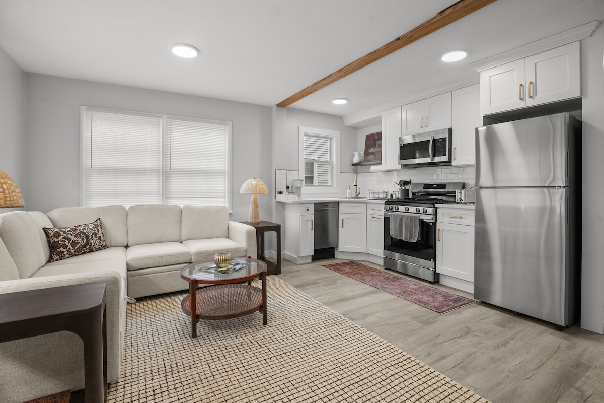 Welcome to your retreat in the heart of Westville. This apartment features a spa-like bathroom and a cozy living room with a super-comfy couch and large flatscreen TV. Relax in this centrally located oasis near Yale’s football stadium, Westville Bowl, local art studios, coffee shops, and top restaurants just steps away. Perfect for extended stays, traveling professionals, visiting faculty, or anyone seeking a convenient home base this winter. Discounts for stays of 30+ days.