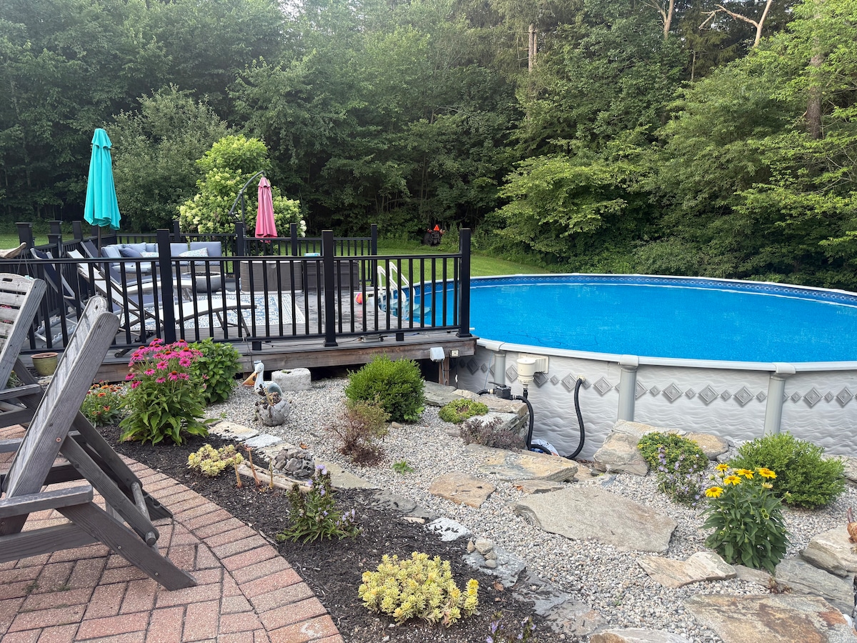 Fabulosa suite recién decorada en una casa de 1957 situada en un estanque privado cerca de Watch Hill, RI. Entrada privada con minicocina, nevera, microondas, placa de inducción portátil, tostadora, cafetera, ¡todo menos el fregadero de la cocina! Nota: No hay fregadero ni horno. Baño privado con toallas nuevas, albornoces, sábanas y ropa de cama. Ducha al aire libre (además de una interior), parrilla, zona de descanso. Cerca de playas, música, comida, atracciones de Mystic CT. Gran lugar para relajarse.