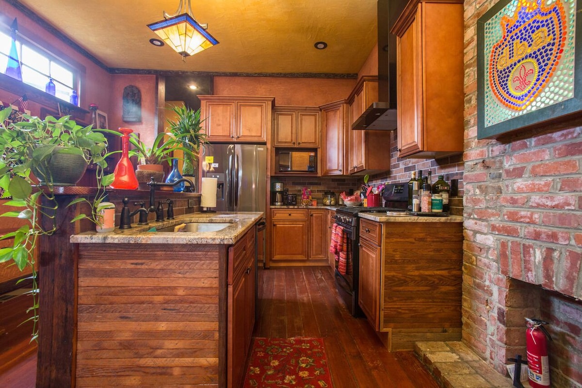 ¡Pasa tu viaje a Nueva Orleans dentro de una obra de arte! Una experiencia de vacaciones funky y caprichosa, esta residencia de artistas no tiene límite para la autoexpresión y no tiene pretensiones. Ubicado en la esquina de Frenchmen Street, hasta 10 huéspedes pueden alojarse en el centro musical y artístico de la ciudad más cool del planeta. Esta calle es la capital musical de la ciudad, ¡así que prepárate para un ambiente ruidoso y festivo! Una casa de artistas única, todo está hecho a mano y personalizado para el hogar. ¡Ven a explorar!