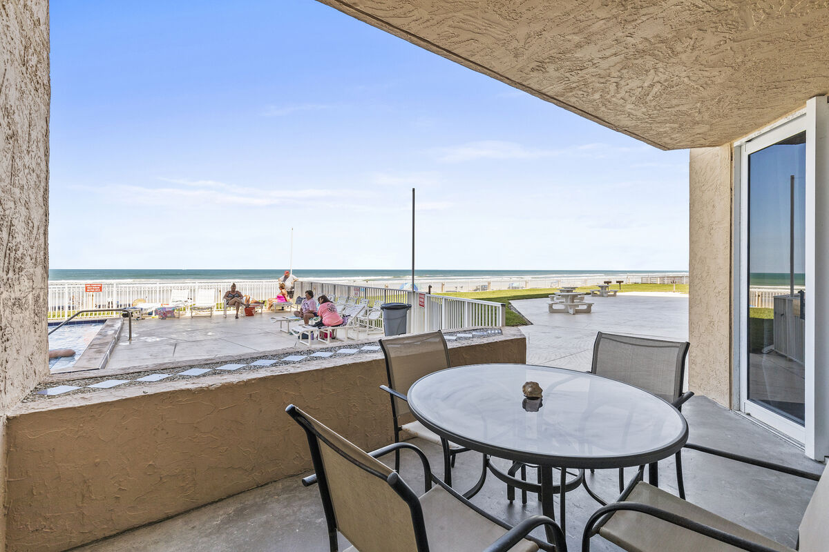 Escapada 🌴 soleada frente al mar en Oceania ► 2 dormitorios | 2 baños completos | Cocina completa | Capacidad para 4 personas Patio ► privado frente al mar con acceso directo a la piscina y brisa marina ► Piscina frente a la playa, salón y zonas de picnic, sala de juegos, lavandería compartida Barra de► desayuno + mesa de comedor para 6 personas para comidas compartidas o mañanas tranquilas ► Caminar a tiendas y restaurantes en Flagler Avenue