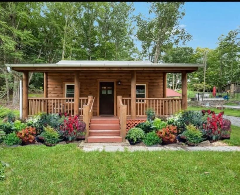 Immerse yourselves in the perfect blend of serenity and romance at our fully renovated Poconos log cabin. It offers a private feel, while located in a safe neighborhood. Cuddle up in our living room day bed while enjoying backyard forest views through the giant picture window. Relax in the hot tub or by the fire pit where memories are made! Centrally located, the cabin provides access to ski resorts and hiking trails. As guests, you'll also enjoy access to the lake, pool, and sports courts.