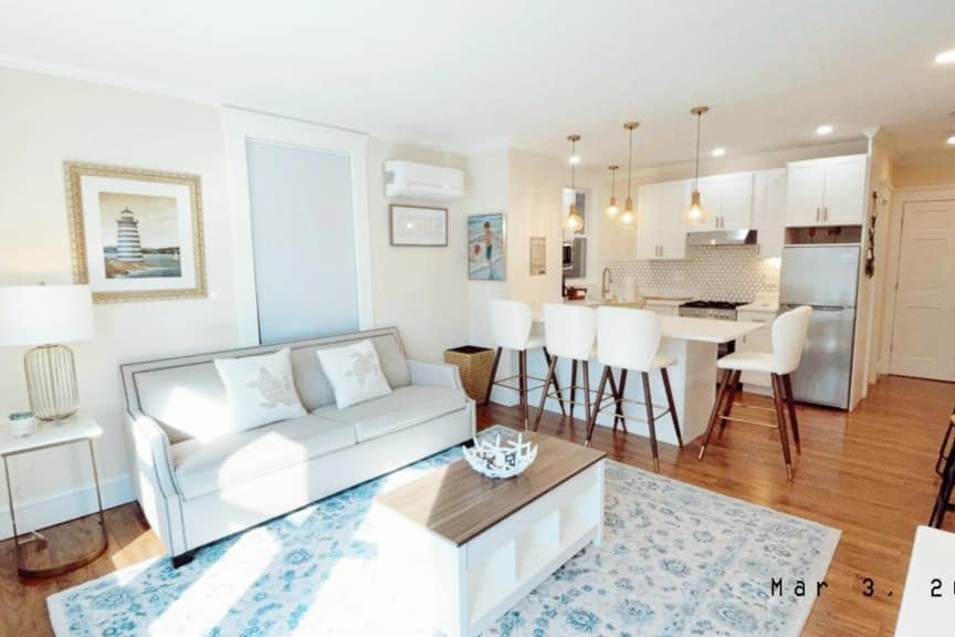Enjoy walkability to local shops, liquor store, cafes, parks and even the harbor in just minutes. Conveniently ground-level with a private entrance, walk right into the condo's open living space with living/sleeping/and casual dining all in one. The condo offers a petite full kitchen equipped with everything you need to cook and clean up a full meal...but why would you when you can walk 5 minutes for a fresh lobster roll? Popular residential downtown location. Bring your well-behaved pet (+$100)