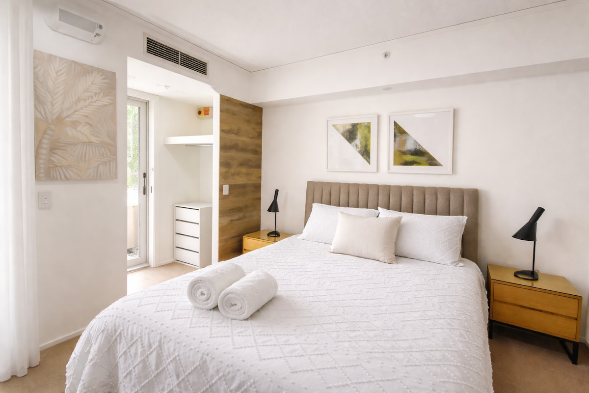 This central elegant apartment is also available as a two bedroom two bathroom apartment for up to 4 guests, however, if you are after a simple economical option of a one bedroom one bathroom apartment for a single or couple- this option is ideal. The apartment is located in Newstead, an up and coming inner city suburb, central to everything, surrounded by river, green spaces, bars, restaurants, cafes, supermarkets, farmer’s markets TV free space- feel free to bring your own devices
