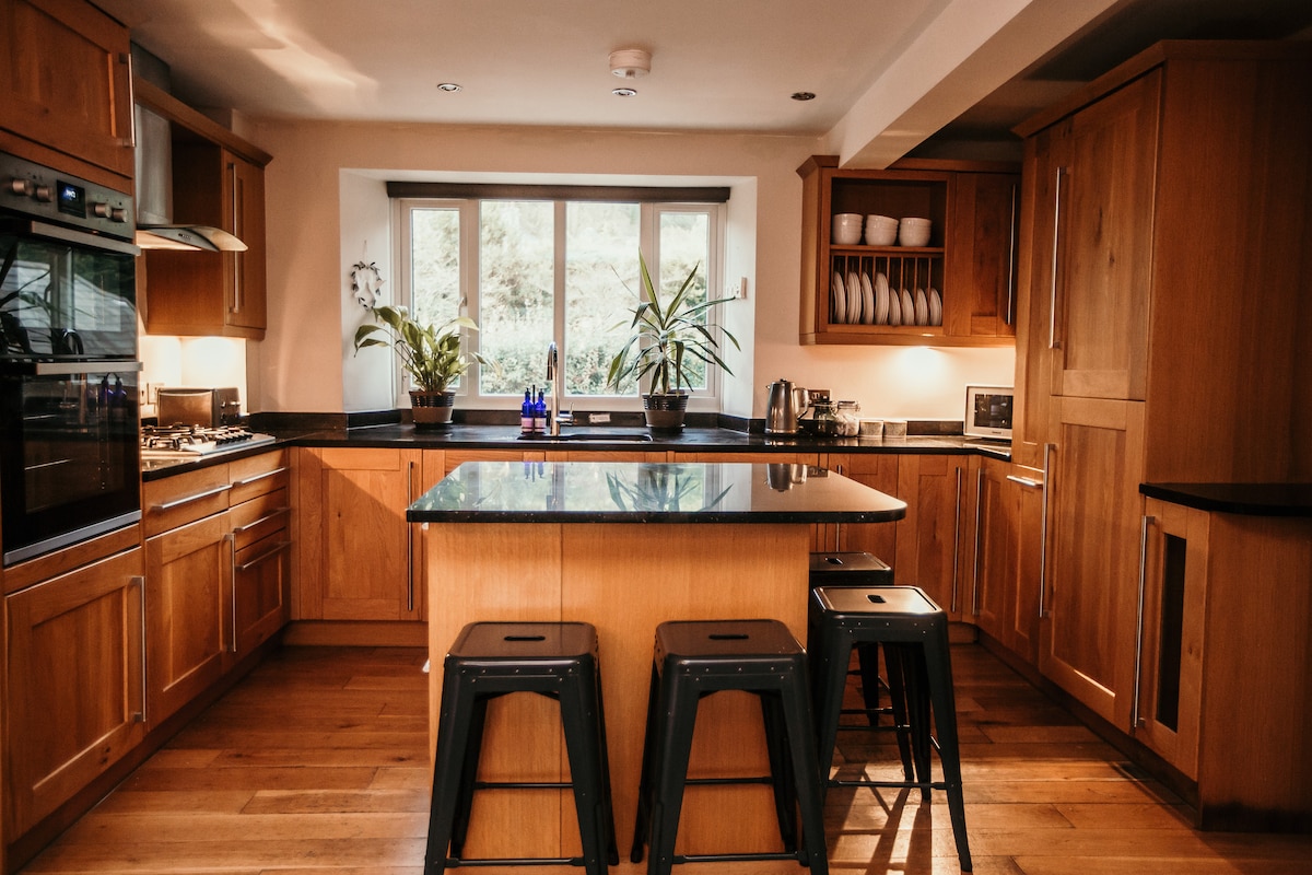 Un espacio tranquilo y profundamente lujoso para recargar energías y reconectar. The Shippon es un establo de vacas meticulosamente convertido con suelos de hormigón pulido y radiante, paredes de color verde oscuro suavemente curvadas, cocina hecha a mano, rincones de lectura cálidamente iluminados y materiales naturales. Mantas de lana, sofá de plumas, estufa de leña escandinava antigua, cama tamaño king con sábanas y edredón franceses, ducha de cascada y las toallas más suaves. Nuestra tranquila aldea de Devon solo está iluminada por las estrellas por la noche. Es posible que duermas mejor de lo que has dormido en años.