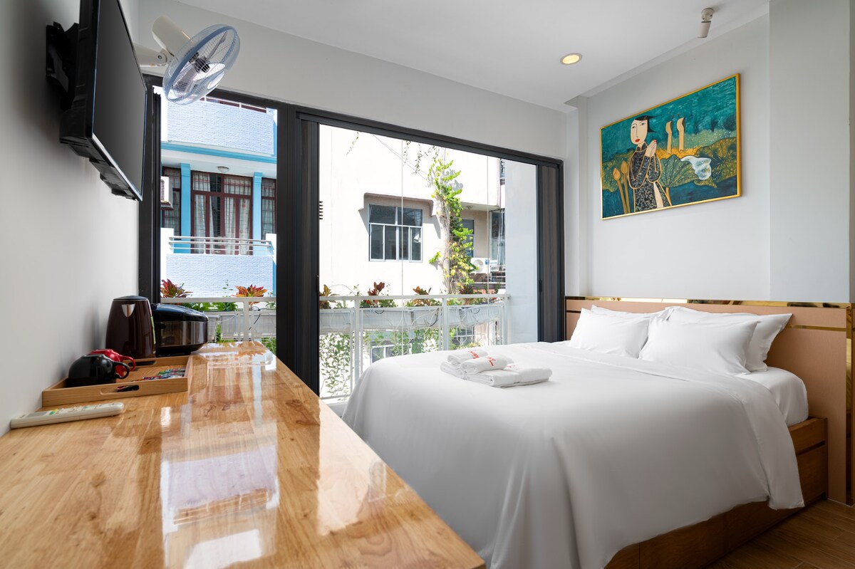 Set on a fresh, tree-lined street in the heart of Saigon, this residence stands out instantly. The building feels nicely designed, and the calm, leafy neighborhood keeps everything cool and peaceful while iconic landmarks stay just steps away. Inside, the suite is bright, elegant, and fully renewed, with every detail set for a long, comfortable stay. Open the curtains and the city spreads out in a wide, beautiful view.