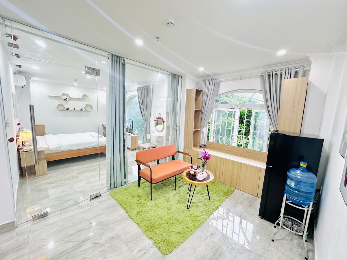 Please be advised that there is ongoing construction in the surrounding area. While the work does not affect access or the quality of the apartment, some daytime noise may be audible. You will feel relaxed in this calm and stylish space. There are many convenience stores, restaurants, and coffee shops nearby, along with access to infinity pool and gym. 15 mins to reach Thao Dien This 1-BR condo has beautiful city view 1 bedroom 1 bathroom Kitchen and living room Smart TV with Netflix function