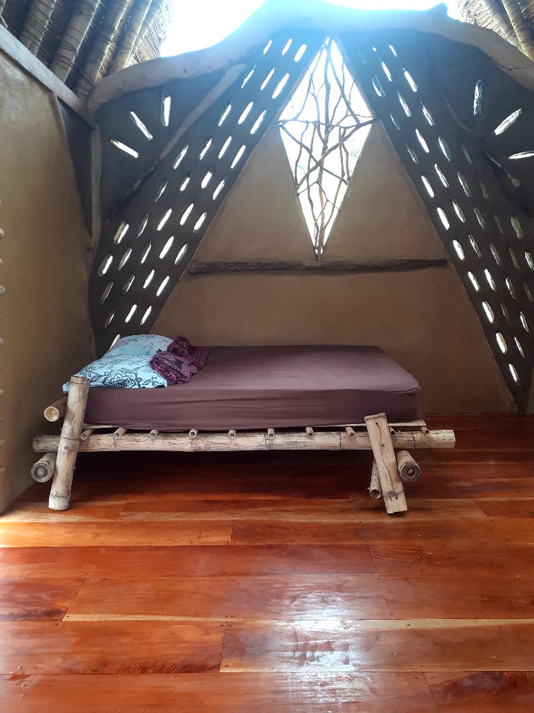 ¡La única bolsa de tierra de este tipo en toda Centroamérica! Una casa con bolsas de tierra es una estructura ecológica construida con sacos de arena, lo que la convierte en una temperatura fría. Diseño único y ubicación única, situado en un centro de bienestar con GLOFlex Cafe en el lugar. Clases diarias de fitness y yoga por la mañana disponibles. ¡Árboles frutales tropicales, cactus y jardines de verduras en todas partes! Concepto abierto con sensación de catedral: techos altos: 3 camas, 1 para una persona pequeña. Baño y terraza privados. Mininevera + filtro de agua ecológica. ¡Lugar fresco!