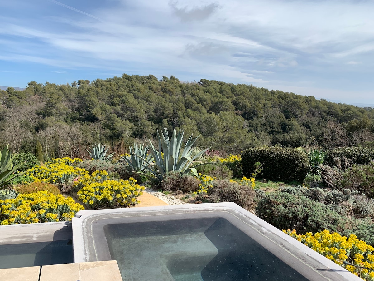 Espero que te enamores de nuestra casa . Hicimos un muy buen trabajo, y todo lo que puedes imaginar para tus vacaciones está aquí. 2 piscinas, una cancha de tenis, un hermoso jardín, una vista increíble... y muy tranquilo... no hay vecinos alrededor... en el sur de Francia no es fácil de encontrar. Muy seguro, hay una alarma en el jardín ... así que relájate.